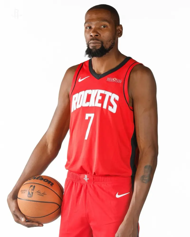 [流言板]紅色絕配!火箭官方分享杜蘭特在媒體日上所拍攝的定妝照