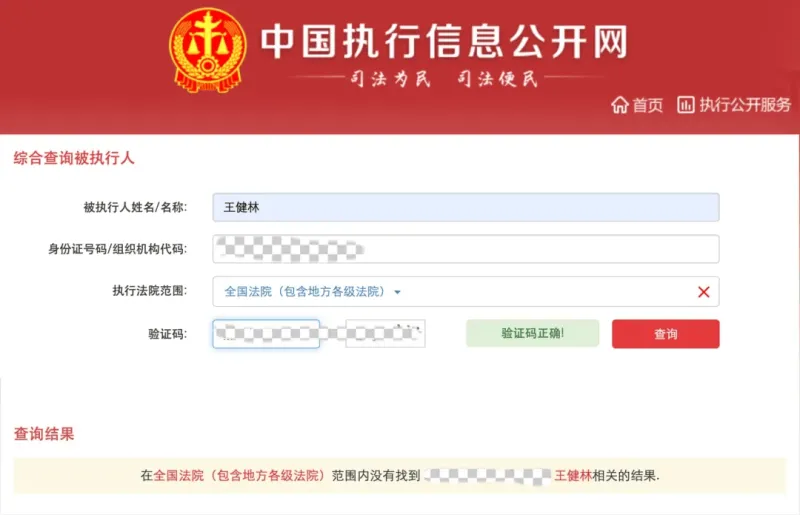 虎撲09月29日訊 中國執(zhí)行信息公開網(wǎng)已無萬達集團董事長王健林“限高”信息。另據(jù)企查查信息,并未顯示王健林“限高”風(fēng)險。