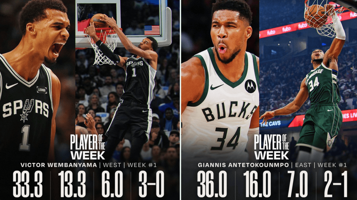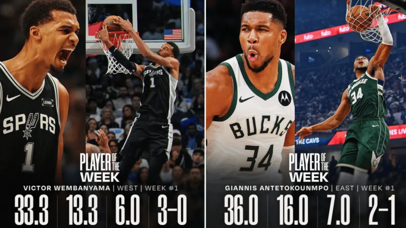 [流言板]新賽季首期周最佳:西部文班亞馬,東部揚(yáng)尼斯