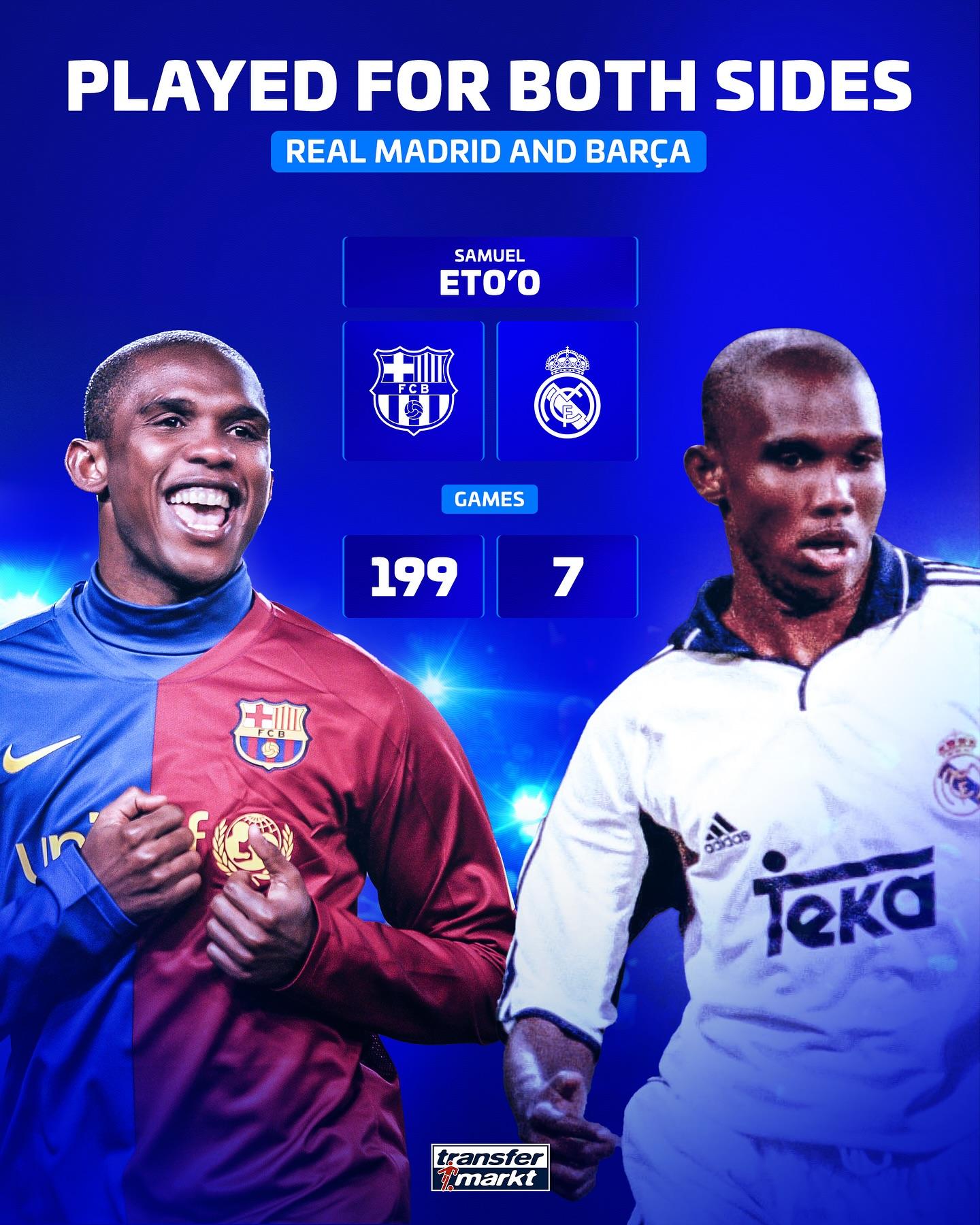 埃托奧(巴薩199場、埃托奧羅皇馬7場)