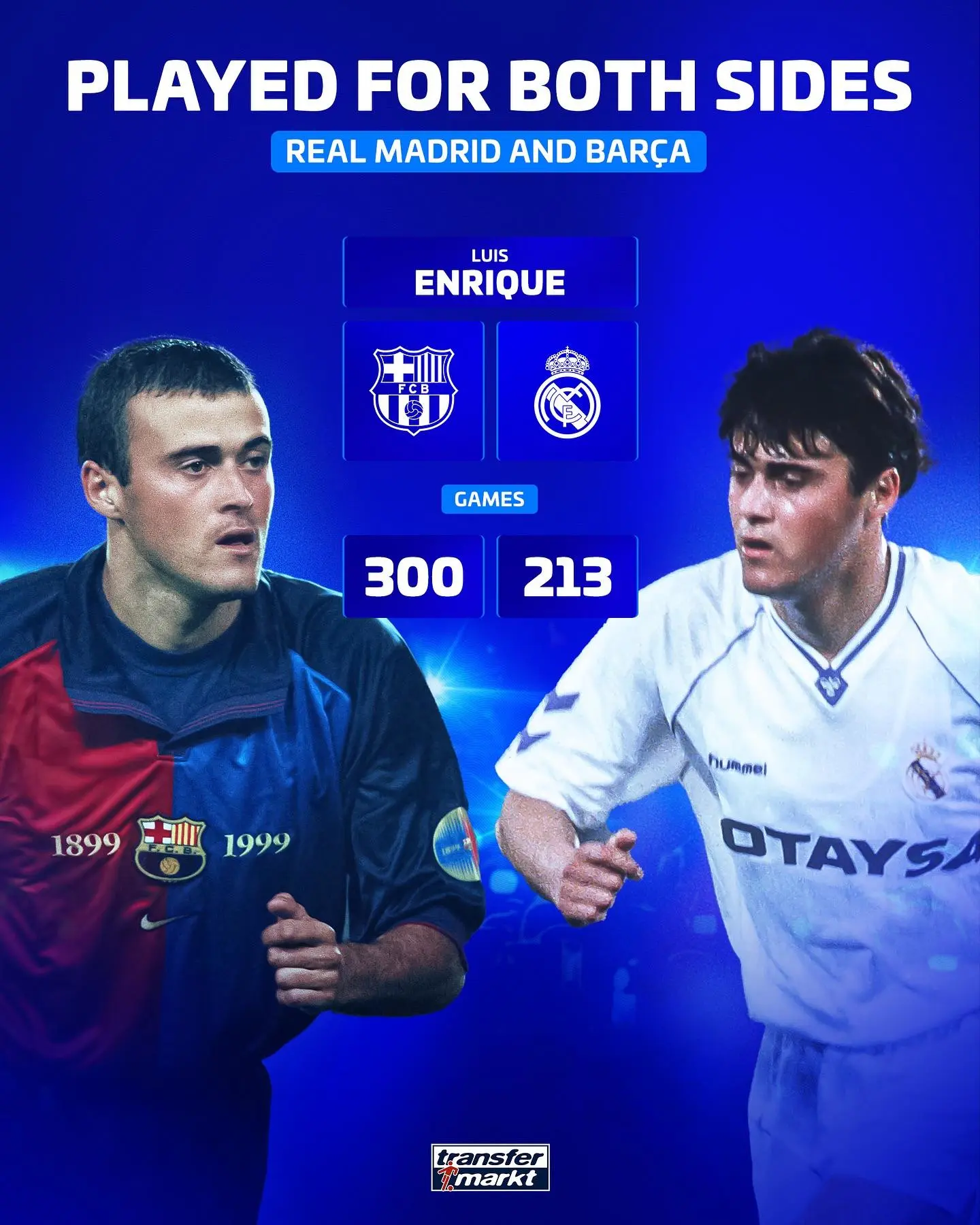 恩里克(巴薩300場、板效巴薩皇馬213場)