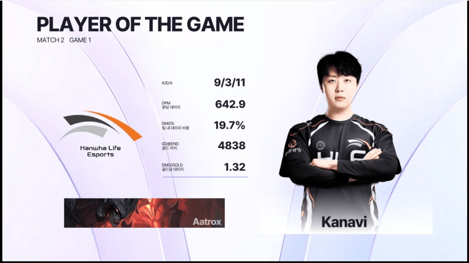 [流言板]Kanavi劍魔砍下9/3/11的戰(zhàn)績,拿下HLE對陣T1首局MVP