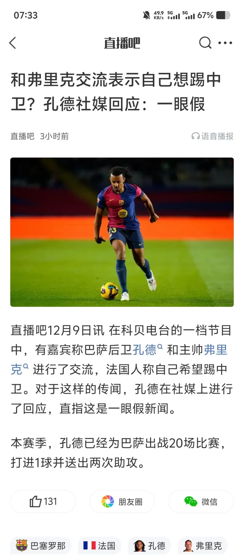 和弗里克交流表示自己想踢中衛(wèi)?孔德社媒回應:一眼假由薩村囧JS 發(fā)表在巴薩專區(qū) https://bbs.hupu.com/barcelona