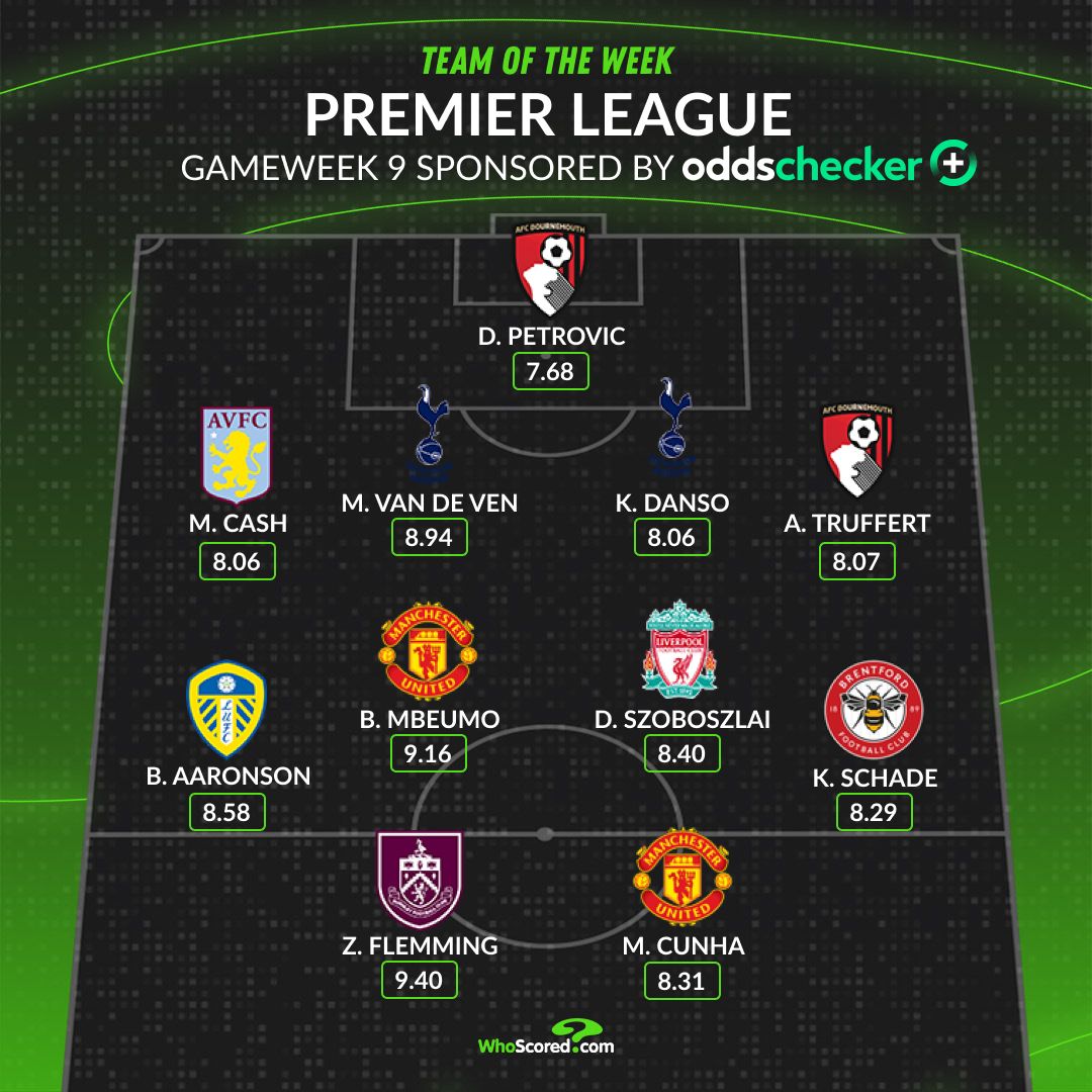 虎撲10月27日訊 Whoscored今日發(fā)布英超第9輪最佳陣容盤點(diǎn),姆伯莫、周最庫(kù)尼亞、佳陣索博斯洛伊入選。容姆入選