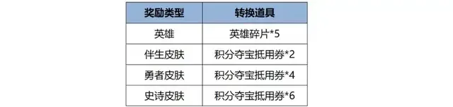 此外,如果所有皮膚都有的話,則會根據(jù)刷出來的皮膚品質(zhì),來轉(zhuǎn)化為積分奪寶券,伴生是2張,勇者是4張,史詩則是6張。