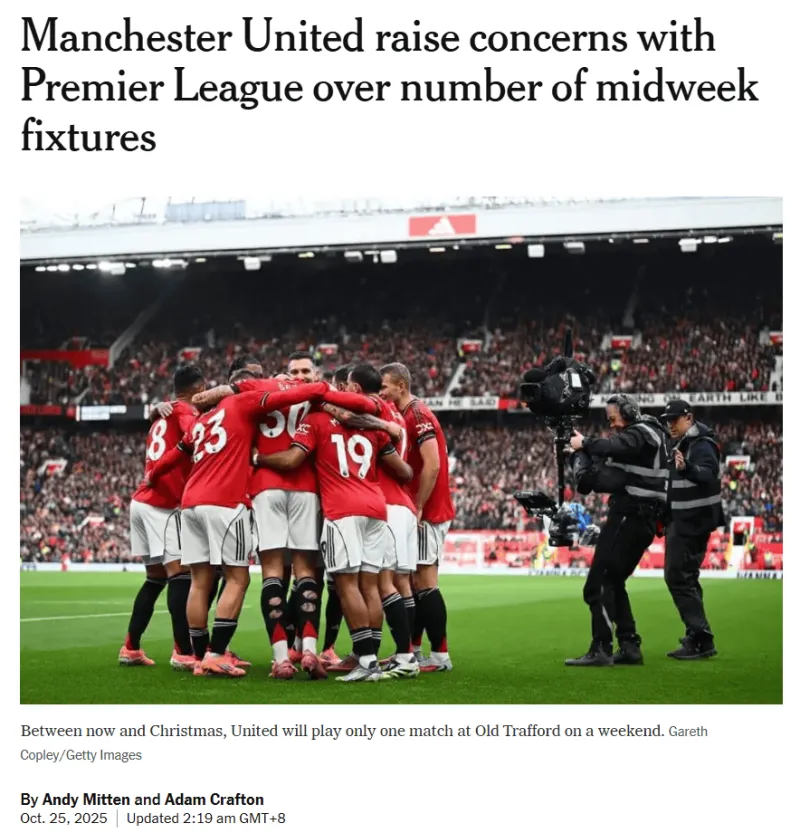 曼聯(lián)已與英超聯(lián)賽溝通,就其當(dāng)前至圣誕節(jié)期間需參加的周中賽程數(shù)量表達(dá)擔(dān)憂。