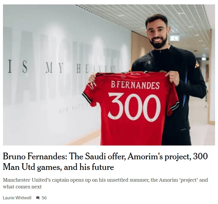 關(guān)于B費(fèi):沙特球隊(duì)的報(bào)價(jià)、阿莫林的計(jì)劃、曼聯(lián)300場(chǎng)里程碑與他的未來