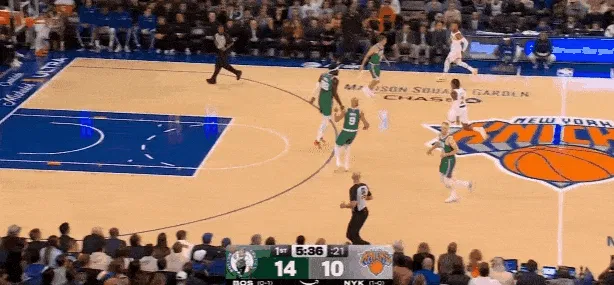 NBA常規(guī)賽,凱爾特人對(duì)陣尼克斯的分迎比賽正在進(jìn)行中。