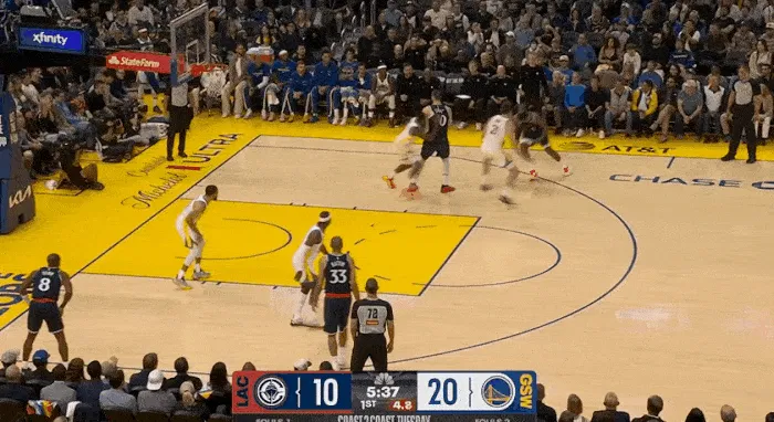 NBA常規(guī)賽,勇士對(duì)陣快船的撤步比賽正在進(jìn)行中。