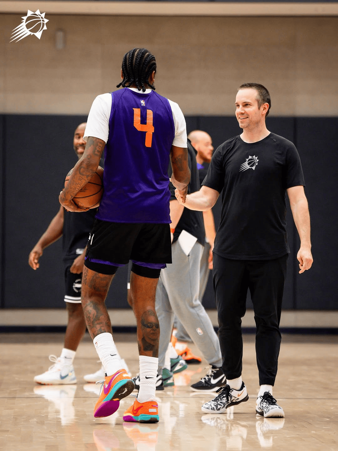 虎撲10月03日訊 太陽隊球員杰倫-格林近日在隊內(nèi)訓(xùn)練營中上腳橙色Nike Lebron20。