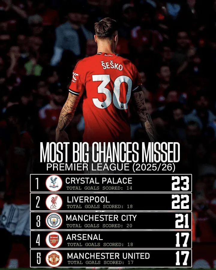 【有進(jìn)步!但不多】——本賽季曼聯(lián)英超已錯(cuò)失17次絕佳的得分機(jī)會(huì)