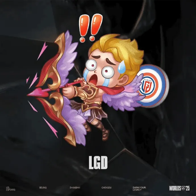 LGD戰(zhàn)隊(duì)的新版向射表情為韋魯斯反向射箭的尷尬表情。