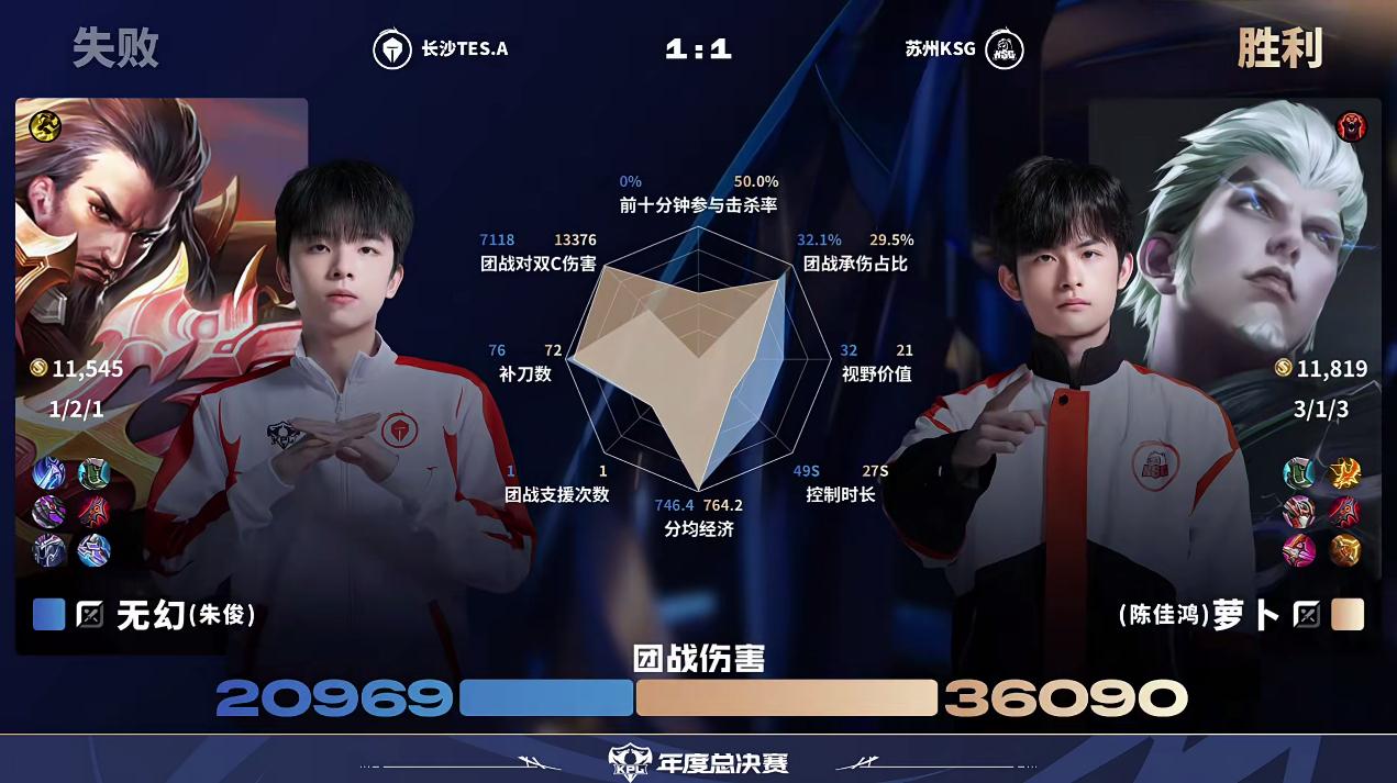 虎撲10月14日訊 KSG/TES第2局?jǐn)?shù)據(jù)對(duì)比:妖刀團(tuán)戰(zhàn)承傷占比3%,死亡率0%。局?jǐn)?shù)據(jù)對(duì)