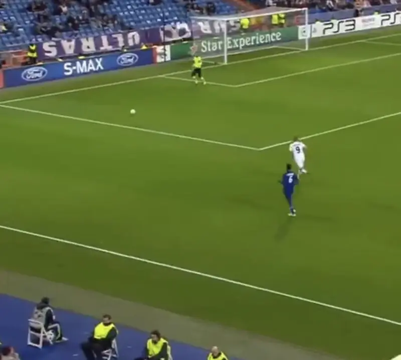 很奇怪的點有兩個,一個是藍色6號好像是庫利巴利,但搜了一下庫利巴利在切爾西穿的是26號;其次鏡頭中白色球衣似乎有個33號球員,但搜了一下皇馬歷史上好像都沒有33號球員。搞得我整個人都懵逼了,覺得這要么就不是皇馬,但也解釋不了藍色球衣6號庫利巴利??????