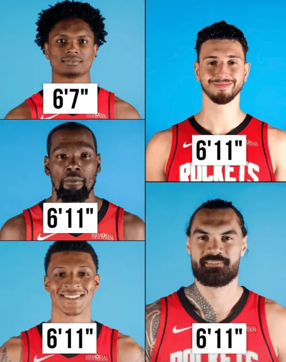 今日,火箭主教練烏度卡公布了揭幕戰(zhàn)對陣雷霆隊的首發(fā)陣容:阿門-湯普森(2.01m)、凱文-杜蘭特(2.11m)、小賈巴里-史密斯(2.11m)、阿爾佩倫-申京(2.11m)、史蒂文-亞當斯(2.11m),該陣容5名球員身高均在2米以上,所以被球迷稱為“死亡五大”。