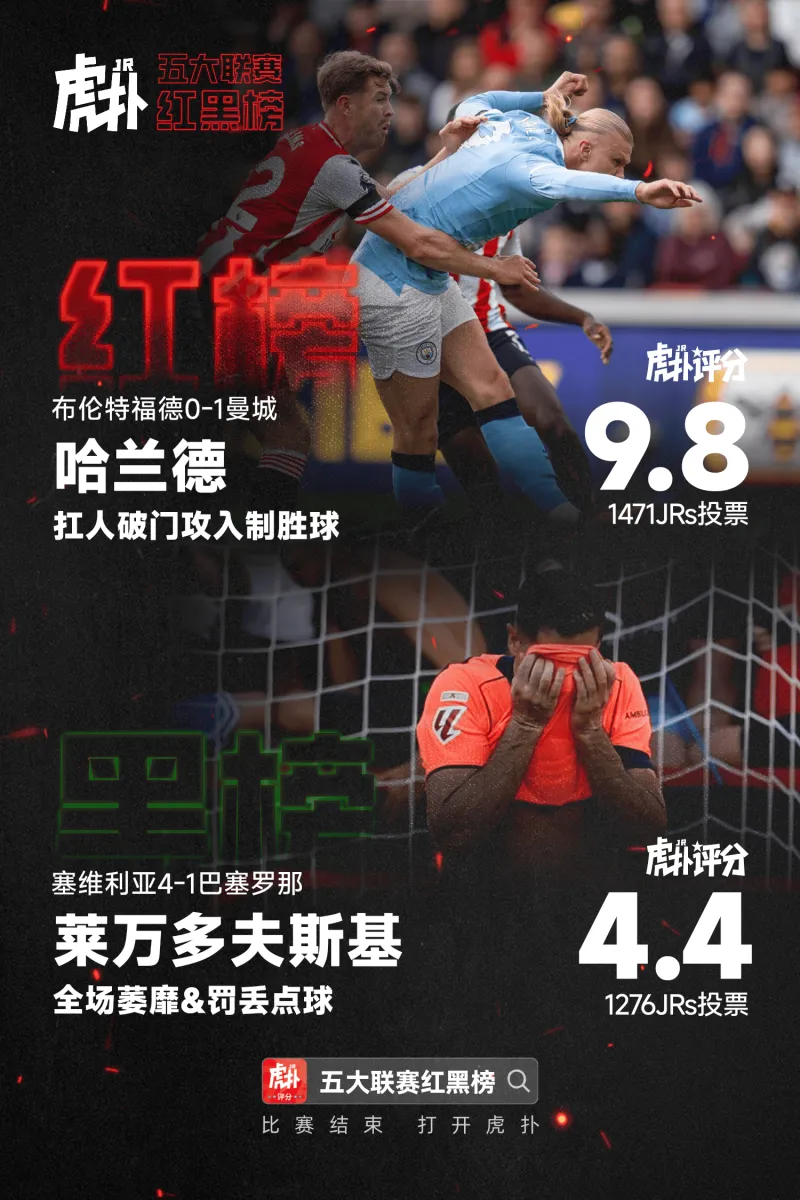 經(jīng)過JRs的全場投票,今日紅黑榜結(jié)果出爐:哈蘭德對陣小蜜蜂標志性扛人破門登頂紅榜;萊萬罰丟點球黑榜第一。萎靡