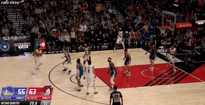 NBA常規(guī)賽,開拓者對(duì)陣勇士的角分進(jìn)開比賽正在進(jìn)行中。