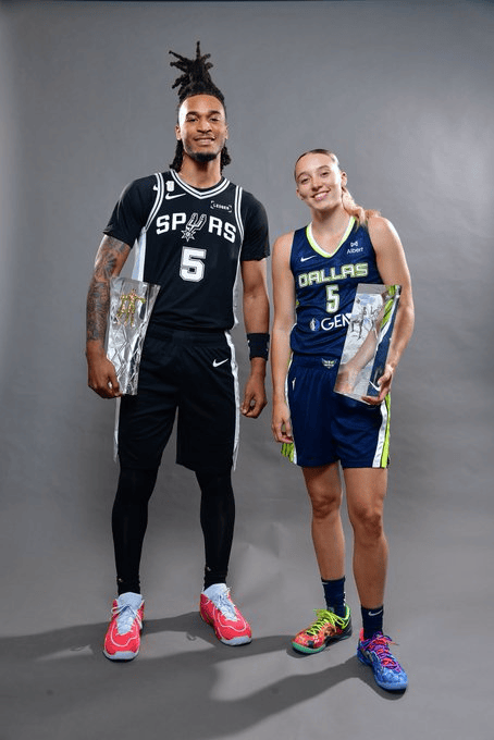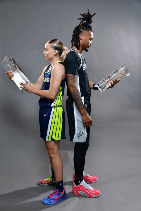 卡斯?fàn)柡团迤娣謩e當(dāng)選今年NBA和WNBA的學(xué)制新秀最佳新秀。