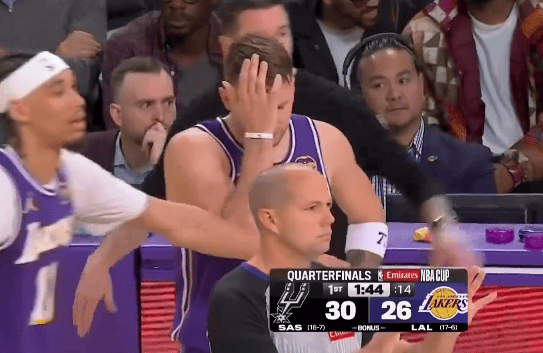 NBA杯四分之一決賽,湖人對陣馬刺的身被隨后比賽正在進行中。