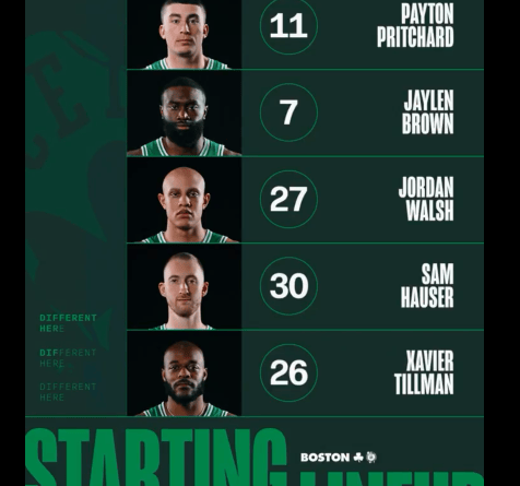 賽前凱爾特人更新官方社媒,公布了今日比賽的首發(fā)陣容。