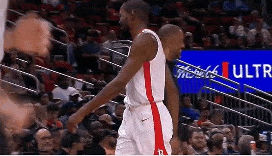 比賽第三節(jié),開心杜蘭特被換下場休息,杜蘭度與烏度卡微笑交談。特被