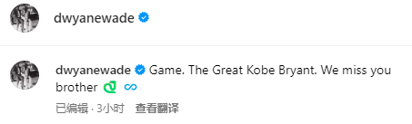 虎撲08月24日訊 韋德INS曬科比絕殺熱火照片:最偉大的科比,想你了兄弟,兄弟永遠(yuǎn)黑曼巴。板韋比絕比想