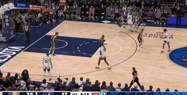 第一節(jié)比賽,板大包夾貝爾暴扣愛德華茲遭遇包夾下直塞籃下,局觀戈貝爾暴扣肆虐籃筐。愛德