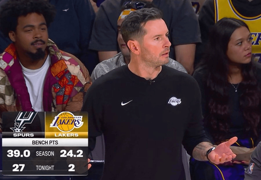 湖人本賽季替補(bǔ)得分24.2分聯(lián)盟墊底,替補(bǔ)馬刺則高達(dá)39.0分。得分底馬