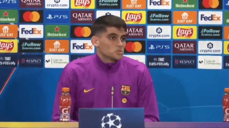 虎撲12月08日訊 巴塞羅那邊后衛(wèi)杰拉德-馬丁出席對(duì)陣法蘭克福的歐冠賽前發(fā)布會(huì)。