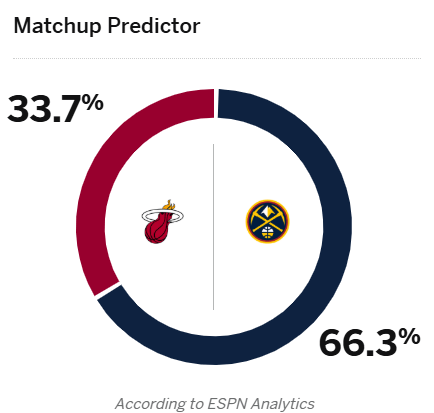 賽前,賽掘美媒ESPN對(duì)本場(chǎng)比賽進(jìn)行了預(yù)測(cè),流言率占掘金勝率66.3%稍占上風(fēng),測(cè)明熱火勝率為33.7%。日掘s熱
