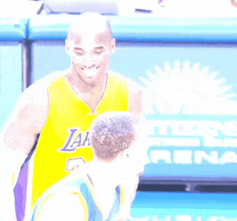 比賽中,庫(kù)里面對(duì)科比的防守命中了一記三分球,隨后科比拍了拍庫(kù)里與其微笑互動(dòng)。