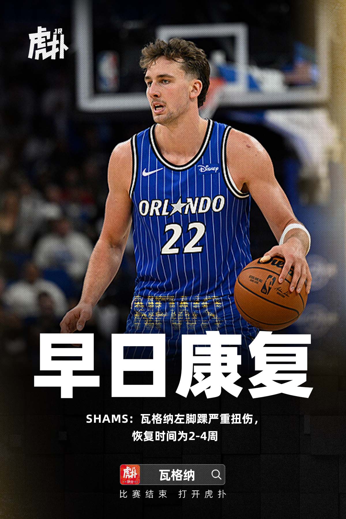 虎撲12月09日訊 今日,NBA名記Shams Charania報(bào)道了關(guān)于魔術(shù)前鋒弗朗茨-瓦格納的納左扭傷傷病情況。