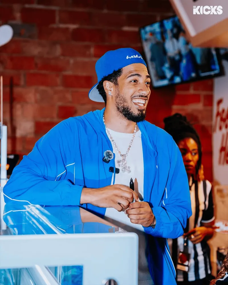 哈利伯頓更是動現(xiàn)客串店員,為球迷們購買的板人球鞋親筆簽名。