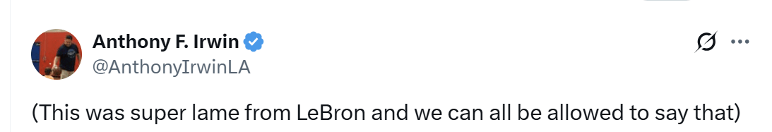 湖人記者Anthony F. Irwin發(fā)文評(píng)價(jià)此事:(勒布朗這波操作確實(shí)挺尬的板湖布朗波操,咱們實(shí)話實(shí)說也沒毛病)