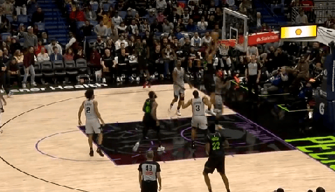 NBA常規(guī)賽,鵜鶘主場迎戰(zhàn)馬刺的空切比賽正在進(jìn)行中。
