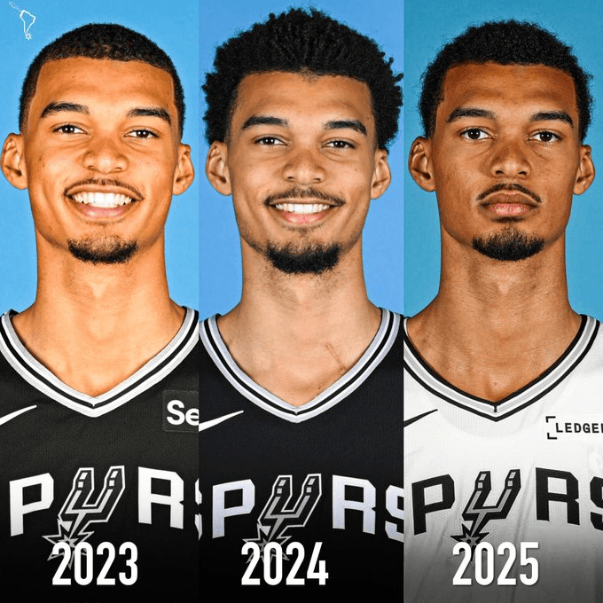 虎撲09月30日訊 今日,馬刺自媒體SpursLegion更新動態(tài),發(fā)堅曬出一張文班新秀賽季與如今定妝照對比圖。定馬定妝