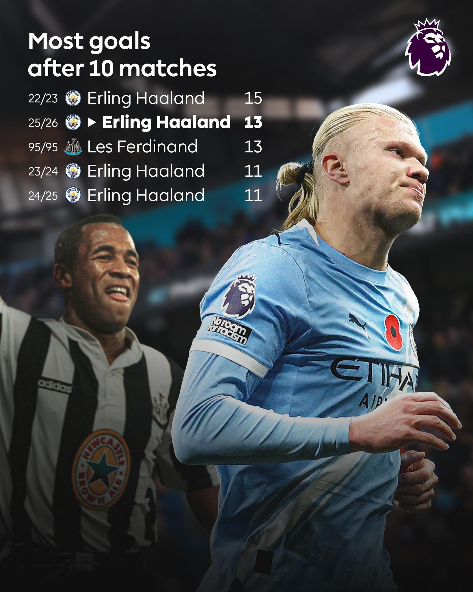英超官方數(shù)據(jù)統(tǒng)計,哈蘭盤點(diǎn)英超賽季前10輪比賽進(jìn)球最多球員榜:
