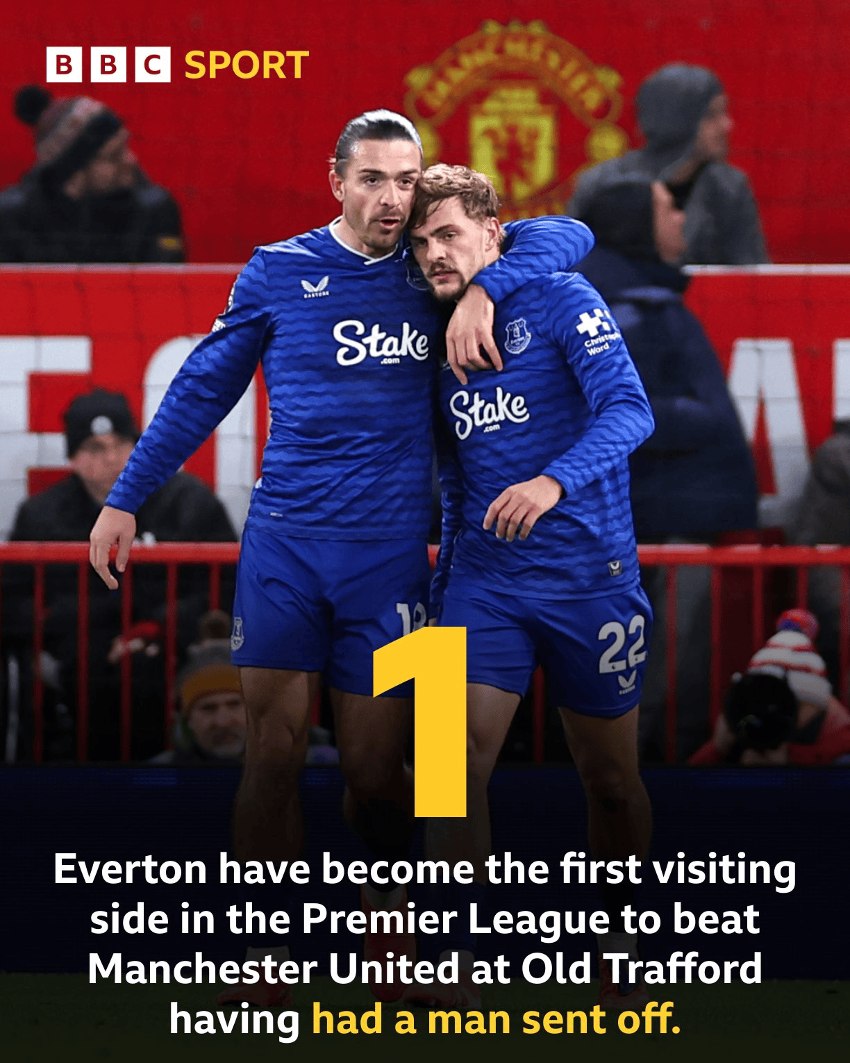 他們成為了英超歷史上,史首第一支在10人作戰(zhàn)的支人作戰(zhàn)情況下依然能在老特拉福德拿走勝利的客隊。
