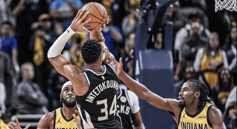 第四節(jié)雄鹿最后一攻,阿德托昆博面對防守中投命中,絕殺步行者。