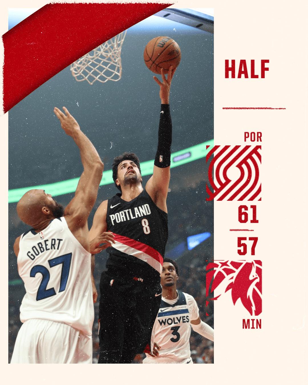 第二節(jié)比賽結(jié)束,場(chǎng)出開(kāi)拓者61-57領(lǐng)先森林狼。戰(zhàn)分鐘投