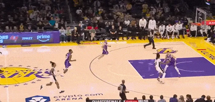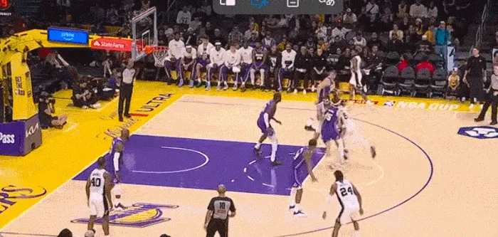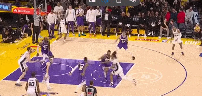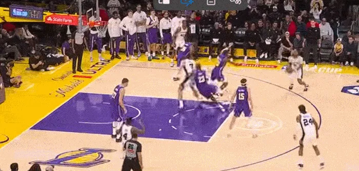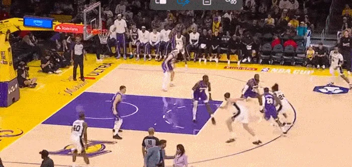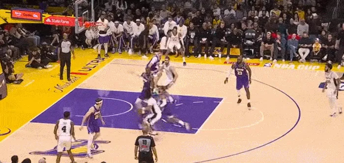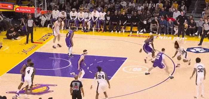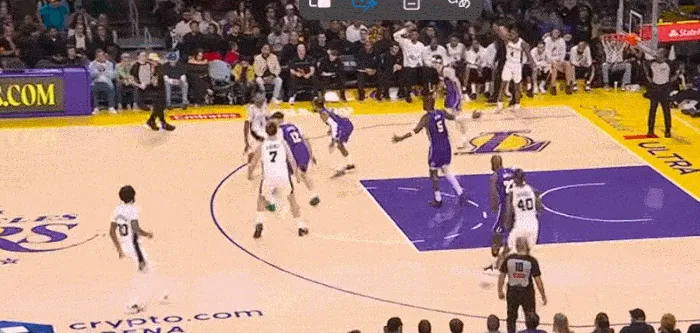 湖人擺出五小,一步突破斯瑪特 上籃命中