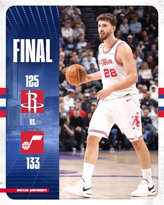 虎撲12月02日訊 今日NBA常規(guī)賽,火箭125-133不敵爵士。場(chǎng)比