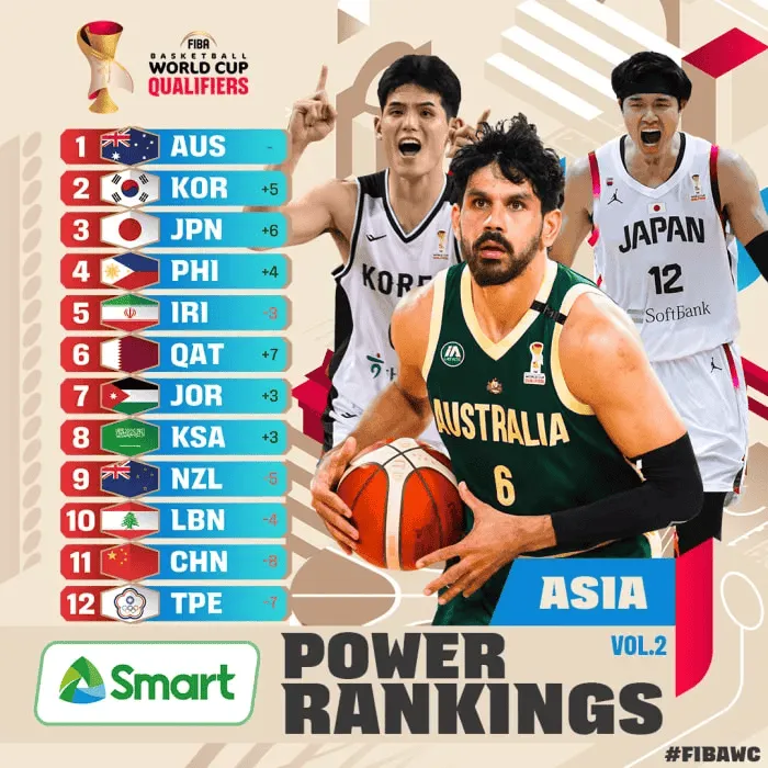 逐漸靠近?男籃實力榜排亞洲第11,國足FIFA排名亞洲第14