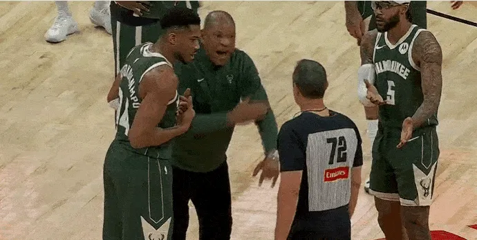 字母哥連續(xù)兩次被切球且裁判未吹罰,里弗斯情緒激動抗議
