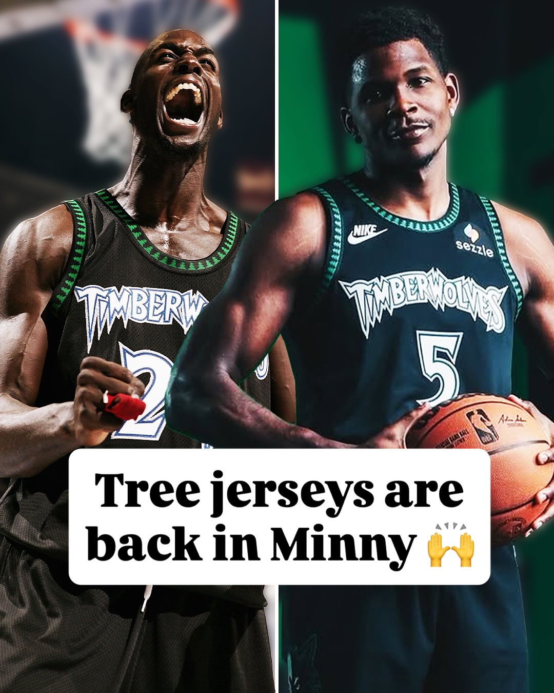 另外,流言狼球還在圖片中標(biāo)注道:三件森林狼曾經(jīng)的板干球衣重新回歸。