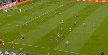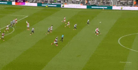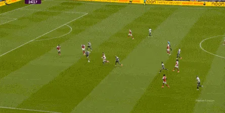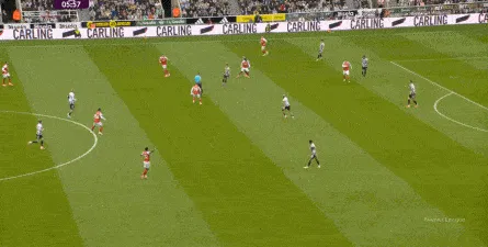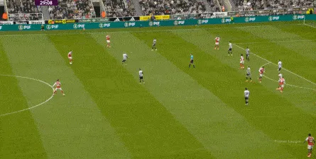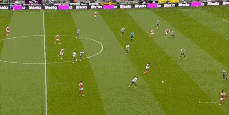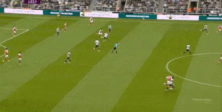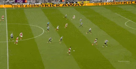 等到第10分鐘,紐卡斯?fàn)柎虺隽怂麄兊倪M(jìn)攻,通過搶斷形成了反擊,進(jìn)而從兩條邊路送上了傳中: