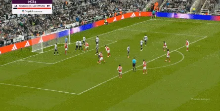 不過,率先通過定位球完成破門的卻是紐卡斯?fàn)枺_卡在反擊戰(zhàn)中射門的進(jìn)攻結(jié)束之后,紐卡將壓力打到阿森納后場(chǎng),莫斯克拉送上了角球機(jī)會(huì):