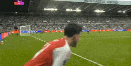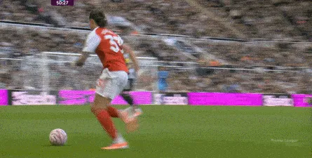 登場(chǎng)之后,厄德高和特羅薩德在外圍進(jìn)行傳導(dǎo),從而把賴斯也推了上去,形成了對(duì)紐卡的更大壓制,所以到了這個(gè)位置,賴斯在外圍擺腿時(shí)間過長(zhǎng),導(dǎo)致進(jìn)攻線路受阻,就變成了定位球機(jī)會(huì):