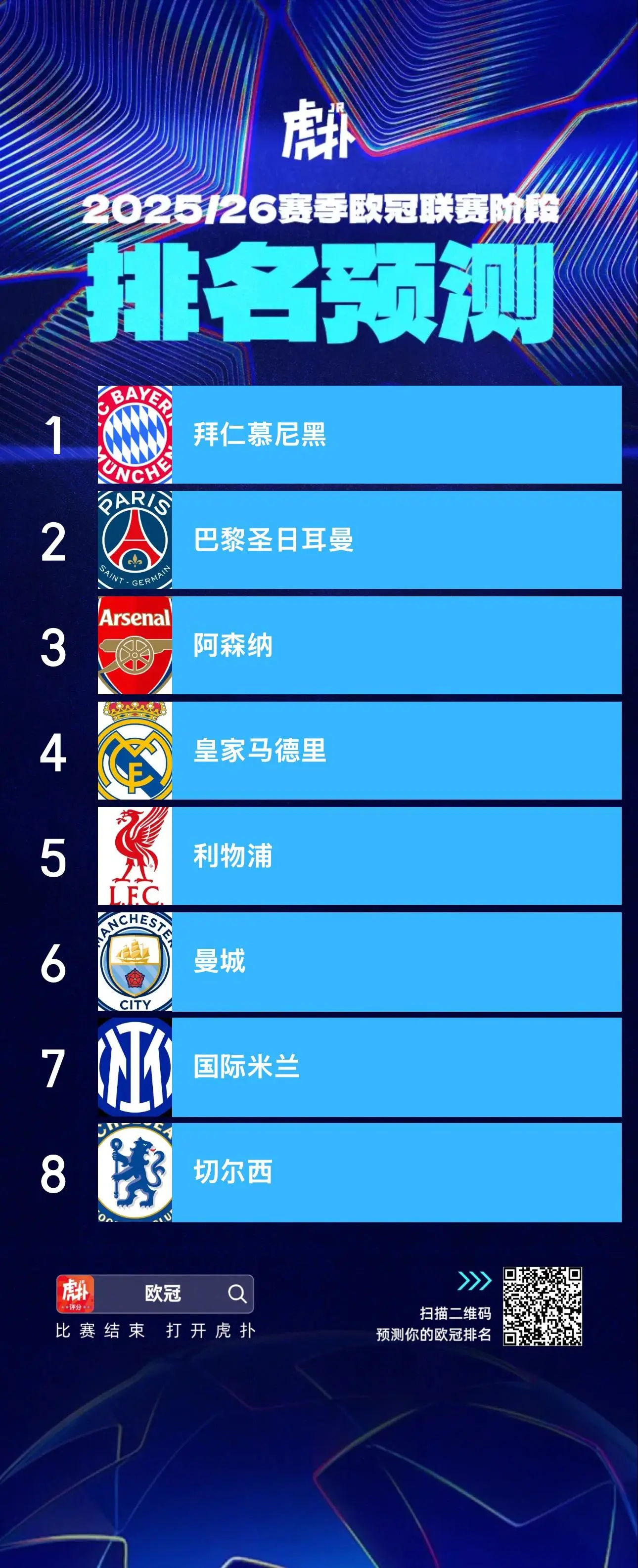 其中,JRs預(yù)測(cè)并未在前八的板歐多特蒙德與紐卡斯?fàn)柲壳败Q身前八,利物浦與切爾西則暫未進(jìn)入前八。冠輪冠前