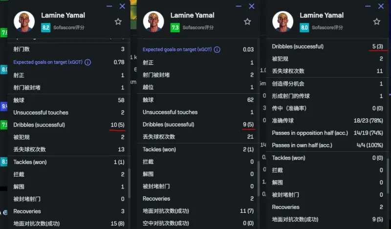 究竟是亞馬爾不會突破了(帶傷復出后4場17次場均4.25次仍然獨步全歐)還是原本這套戰(zhàn)術(shù)就只能靠亞馬爾三倍于平均數(shù)的突破兜底?